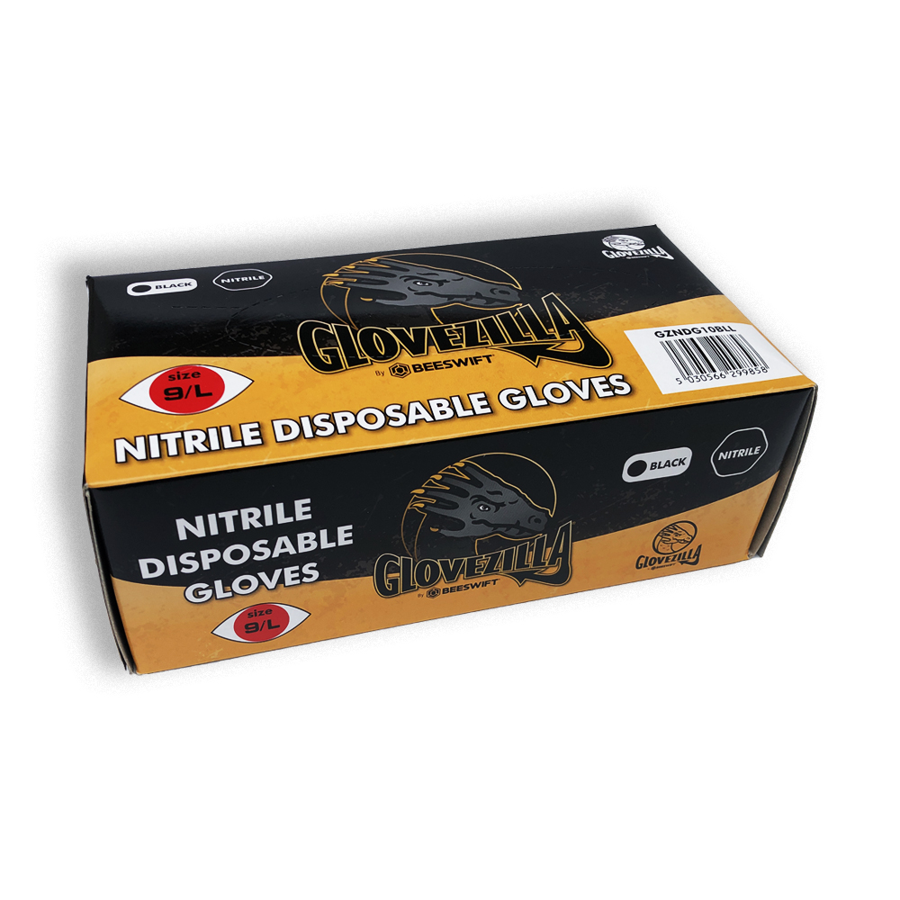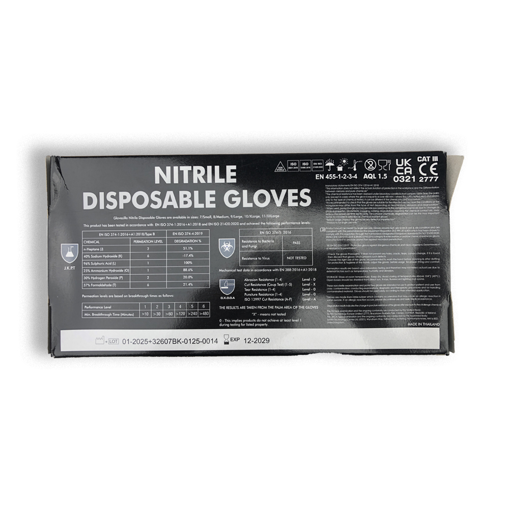 ↠ This box contains 90 powder-free, black textured nitrile gloves